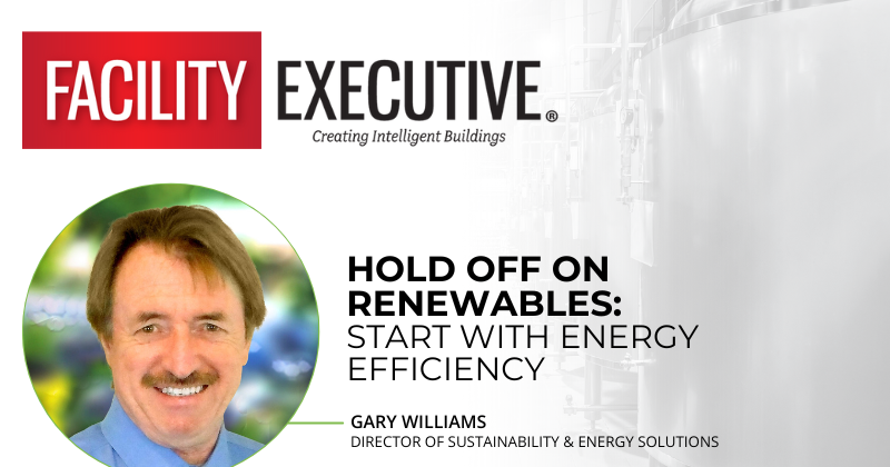 ESFM Director of Sustainability & Energy Solutions Gary Williams wrote an article for Facility Executive sharing how starting with a solid energy efficiency foundation in place allows a facility to maximize its investments in renewable energy.